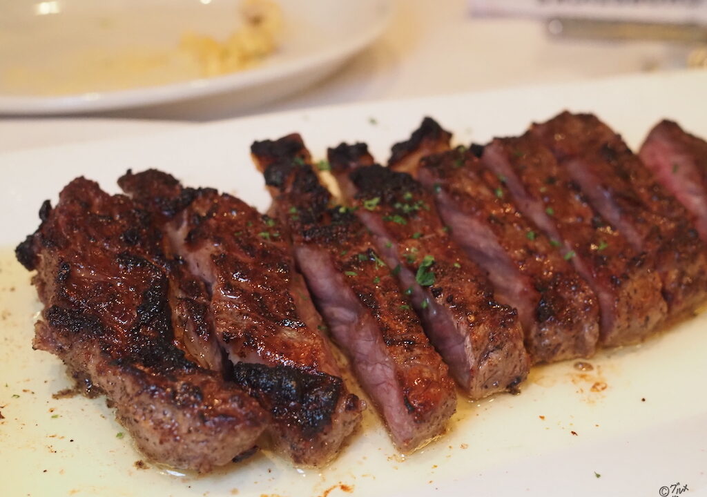 「Ribeye(リブアイ)」($26.95)、ステーキはミイディアム・レアで注文。しかし、これはミディアムだよな・・・レアではないな。日本人客が多いから、こうなったのか。それともここのミディアム・レアがこれなのかは、微妙なところですがこの焼き加減ならレアとして注文するべきだった。やっぱステーキはレアであればある方がいいんだよな。味はというと、ニューヨークでひたすら焼いて来た経験を持ってすると、自分で焼いた方が美味しくできるなというレベルではある。